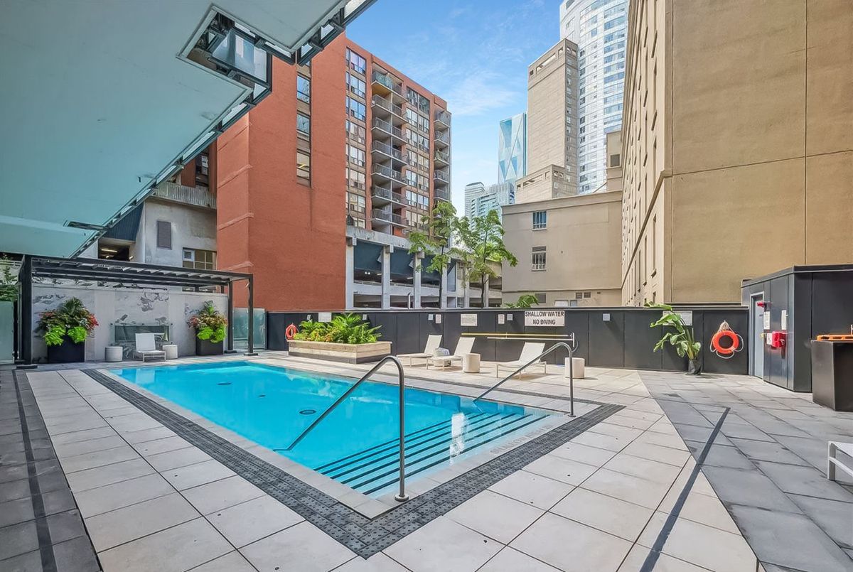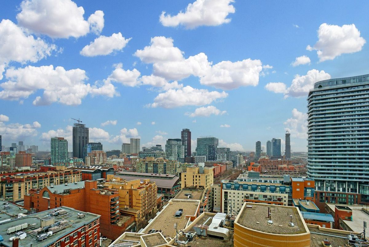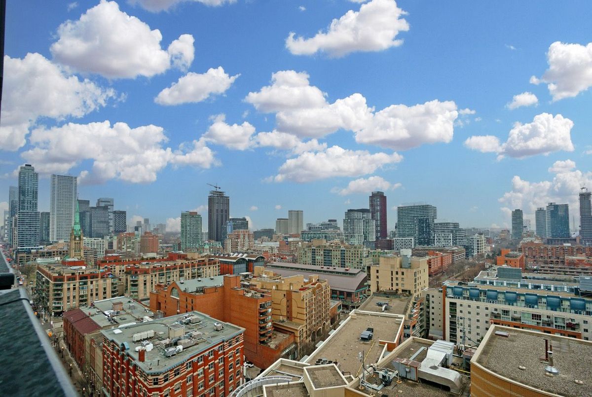 Live at the epicentre of Toronto on The Esplanade! Perched on the 17th floor, this stunning like-new 1-bed + den + 1 bathroom offers jaw-dropping panoramic views from a spacious, full width 115 sq ft balcony. Boasting the HOLY GRAIL of floor plans - wide and shallow, not long and narrow this layout floods the unit with natural light in all rooms and maximizes every square inch. Watch beautiful sunrises glistening off the skyline and lake Ontario. Floor-to-ceiling windows make this unit feel so much more spacious. Loaded with upgrades including full-height kitchen cabinets and custom roller blinds on all windows. Enjoy world-class design in a striking architectural tower with 24Hr concierge, state-of-the-art 4-level gym, outdoor pool and much more. TTC access at your front door. Just steps to St Lawrence Market, the Distillery and Financial Districts, parks, gyms, cafes, Berczy Park and so much more! Whether you're sipping coffee on the balcony, entertaining in style or taking in the vibrant urban energy below, this condo delivers luxury, comfort, and convenience in one iconic address. Live where the city comes alive!